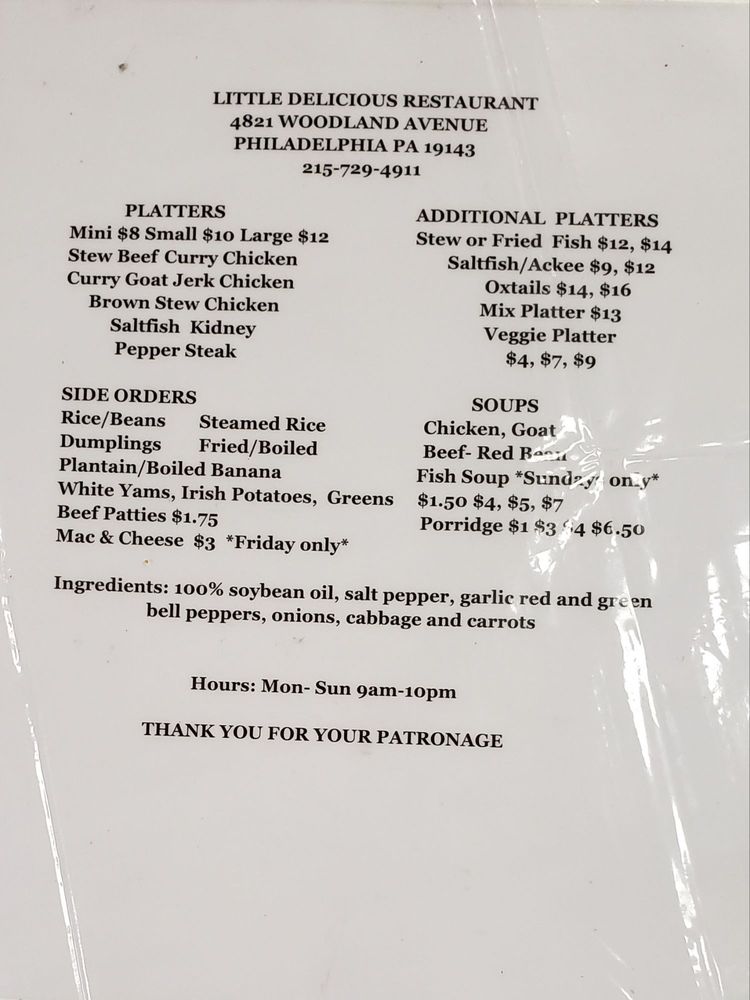 Located in Philadelphia, Little Delicious is a Caribbean restaurant that has been serving up flavorful dishes for decades. Known for their authentic Jamaican cuisine, this spot offers a variety of options that will satisfy any craving. From pepper steak to jerk chicken, customers rave about the well-seasoned and perfectly cooked dishes. The portions are generous, ensuring you'll leave satisfied.